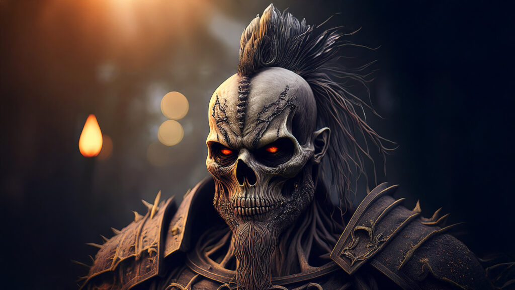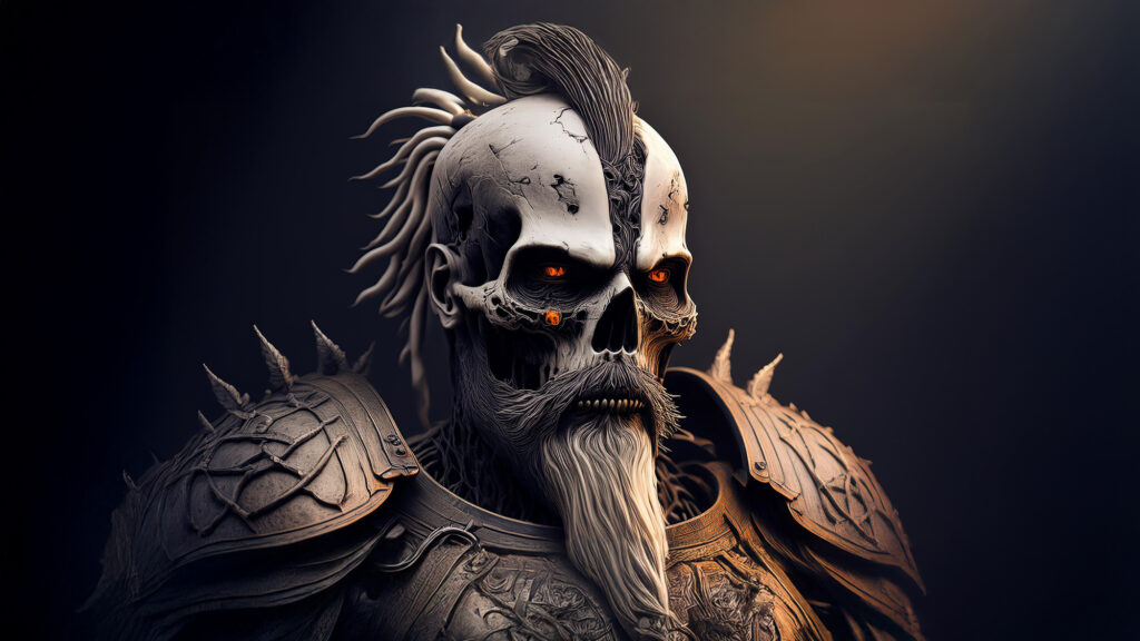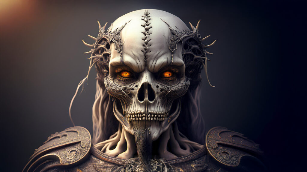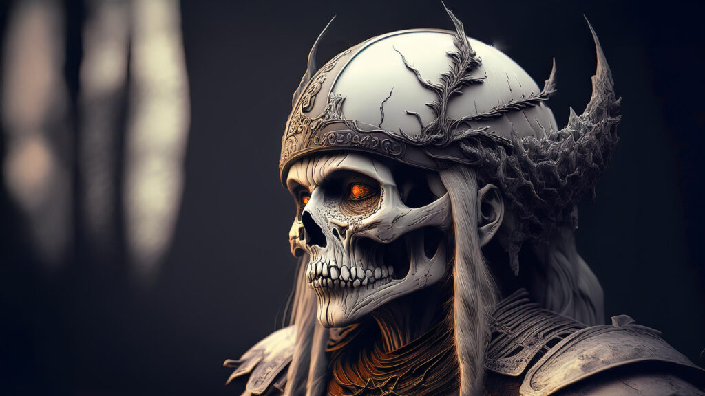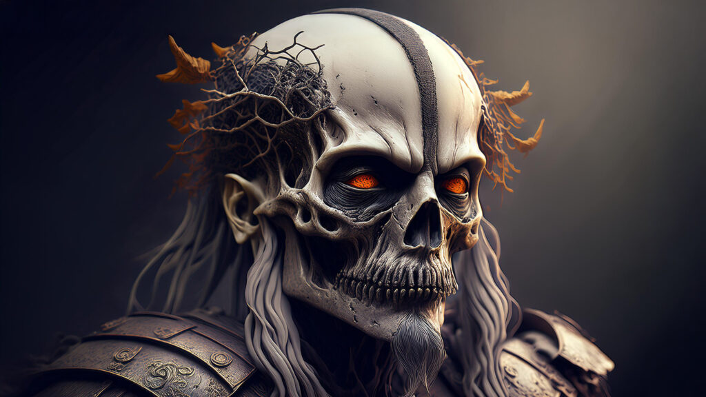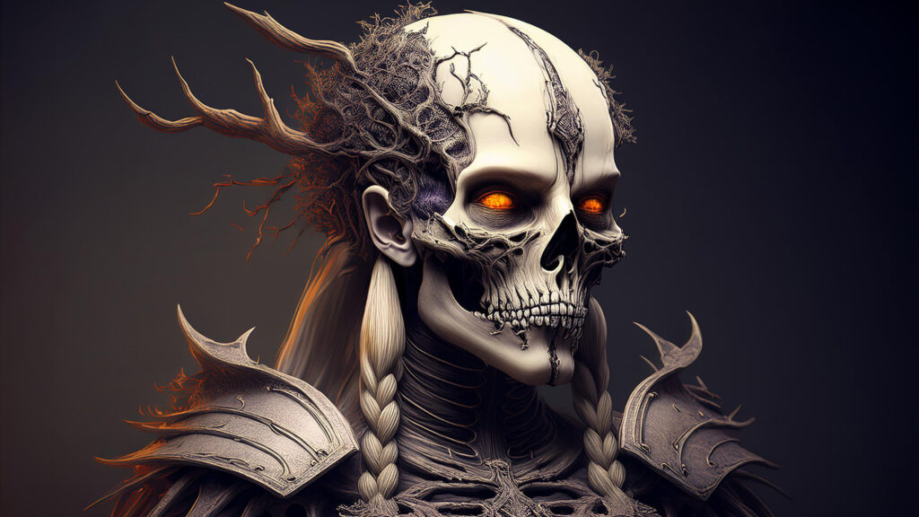 Warriors are a part of the same AI Dreamland as the Men and Women The images are living organic beings that have evolved exoskeletons; hence, the boney skull faces. In their world these characters grew from plants that have grown to become sentient beings. Mixed into these mutants, combining with tomatoes, garlic bulbs and some kind of green goo on their insides. Their faces, made less of flesh and more of sticks or vines, their piercing eyes cut right into you. Anybody look familiar….
